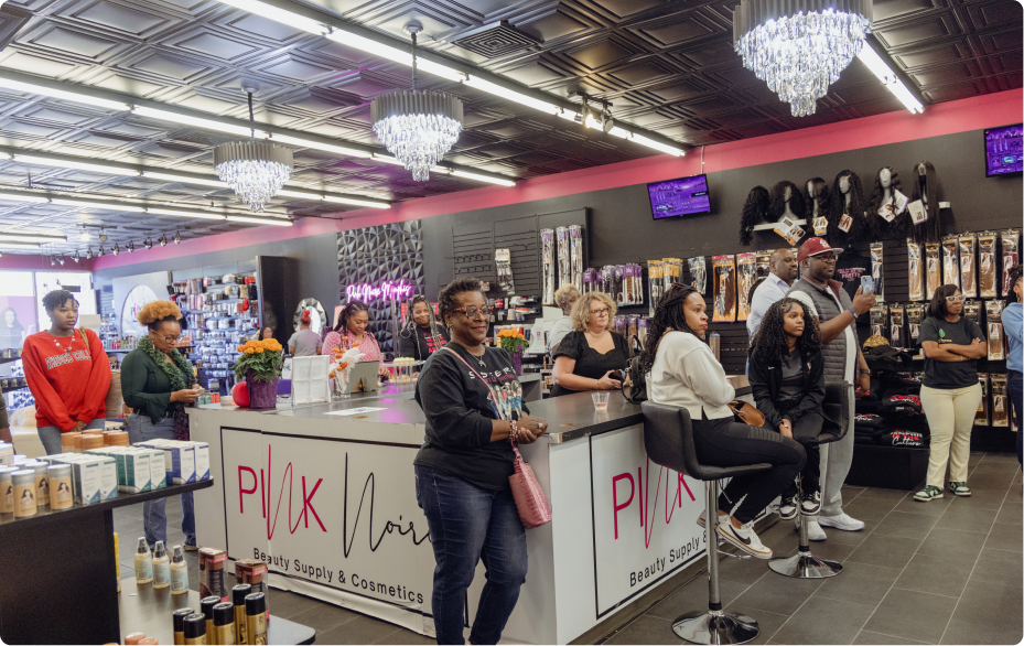 She created Pink Noire to bring a curated, luxury beauty supply experience to women with textured hair — both online and inside our Memphis flagship store.