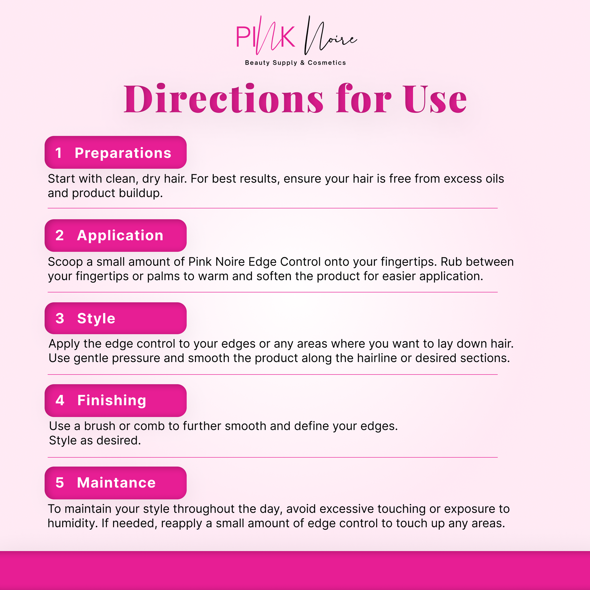 Achieve sleek, stunning edges with Pink Noire Edge Control, the ultimate solution for taming even the most stubborn baby hairs. Perfect for all styles, from sleek ponytails to chic buns and braided masterpieces, this edge control gel for black women delivers a long-lasting hold that keeps your edges smooth and polished all day.