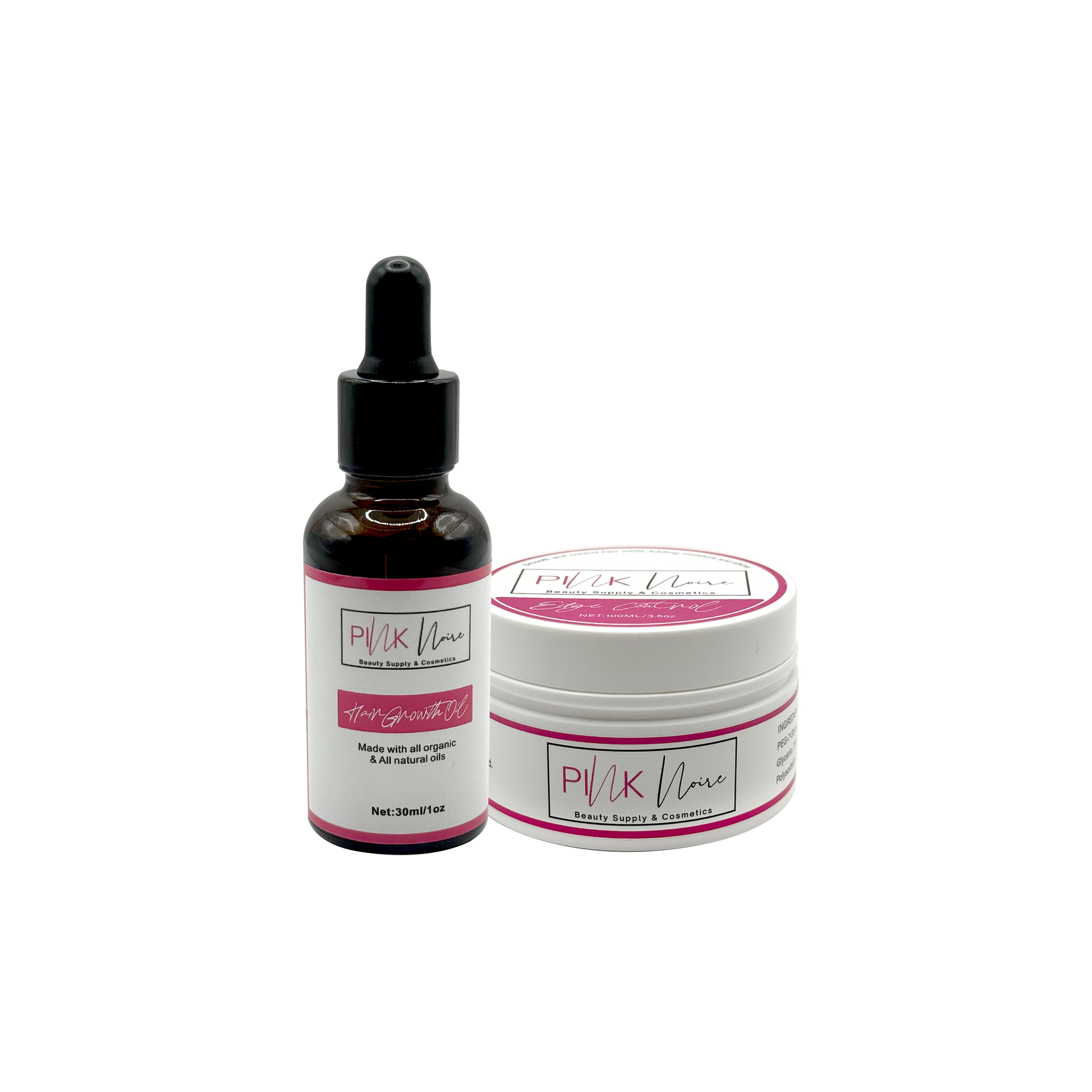 Enhance your hair care routine with the Pink Noire Hair Oil and Edge Control Duo, a dynamic pairing designed to nourish, style, and maintain your hair effortlessly. This package combines the luxurious Pink Noire Hair Oil and the effective Pink Noire Edge Control, formulated with premium ingredients to give your hair the attention it deserves.